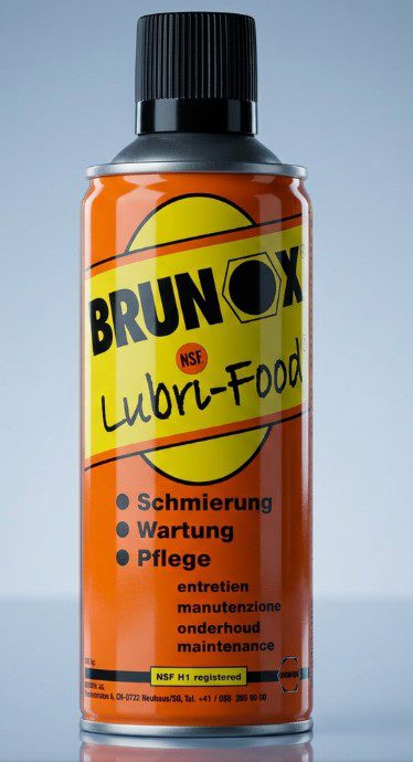 Schmierstoff, Korrosionsschutz, Kriechöl und Reinigungsmittel geeignet für gelegentlichen, technisch unvermeidbaren Kontakt mit Lebensmitteln, ist NSF H1 registriert (Nr.136783/137856)
