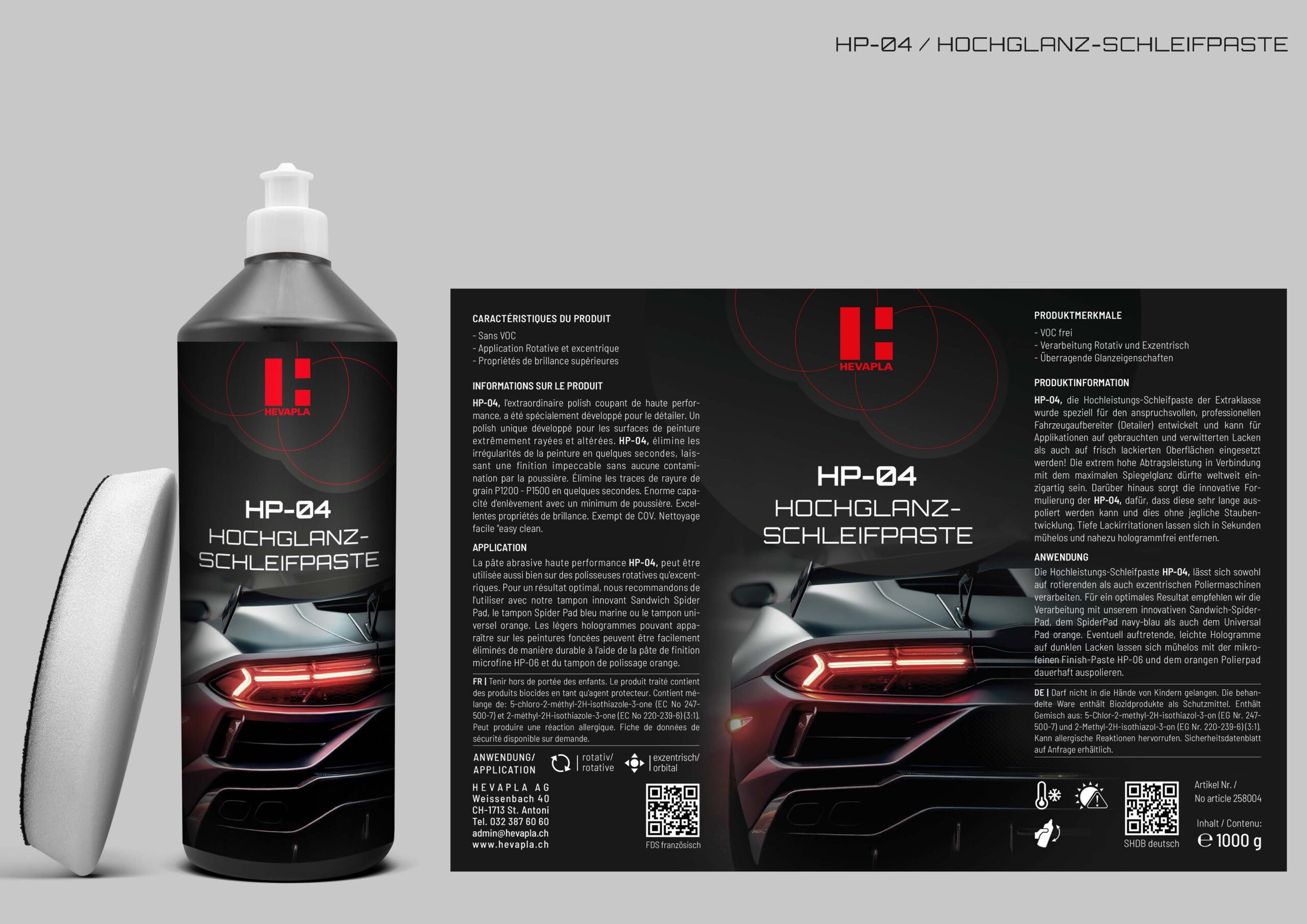 HP-04, die Hochleistungs-Schleifpaste der Extraklasse wurde speziell für den anspruchsvollen, professionellen Fahrzeugaufbereiter (Detailer) entwickelt und kann für Applikationen auf gebrauchten und verwitterten Lacken als auch auf frisch lackierten Oberflächen eingesetzt werden!